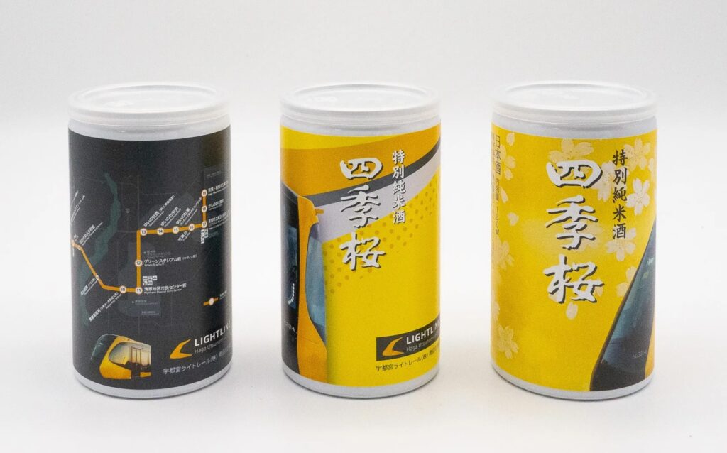 そんな宇都宮の新アイコンと、明治時代から鬼怒川の伏流水で酒造りを続ける「四季桜」がコラボレーション。見て楽しい、飲んで美味しい、特別な限定セット「LRTパッケージ四季桜セット(缶)」が誕生しました。